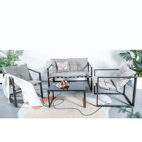 Tiptop ชุดโซฟา4ชิ้น, ชุดโซฟากลางแจ้งทันสมัยเฟอร์นิเจอร์โลหะสำหรับสวน