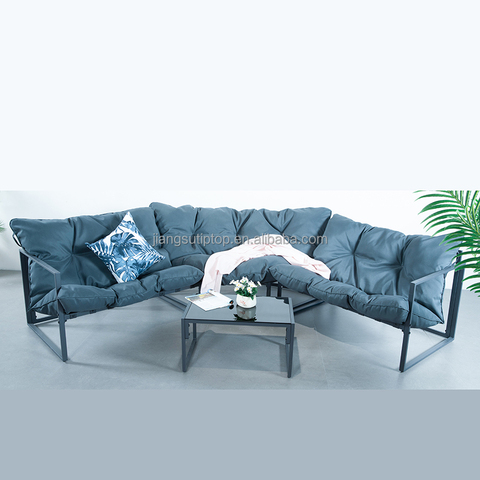นอร์ดิกโมเดิร์นโรงแรมระเบียงโซฟาผสมโครงเหล็ก L รูปร่างชุดโซฟาสวนกลางแจ้ง