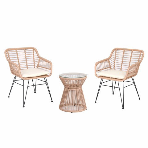 กลุ่มที่นั่งหวาย PE กลางแจ้ง4คนพร้อมโต๊ะเหล็กชุดบิสโทรสำหรับลานบ้านเฟอร์นิเจอร์สนทนาสำหรับสวน