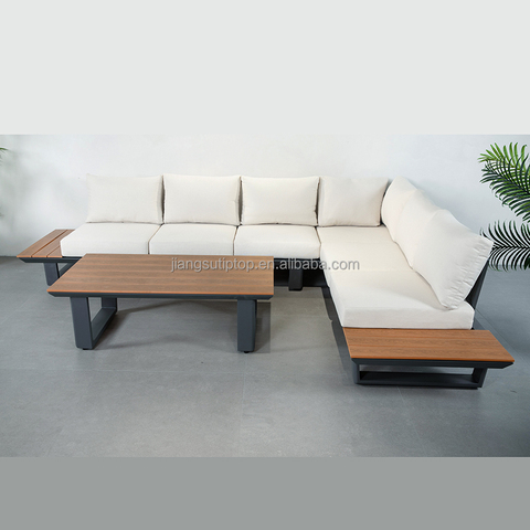 ราคาถูกมุมลานรูปหวายหวายกลางแจ้งหรูหราไม้สักโซฟาสวนชุดอลูมิเนียมกลางแจ้งเฟอร์นิเจอร์เชือก