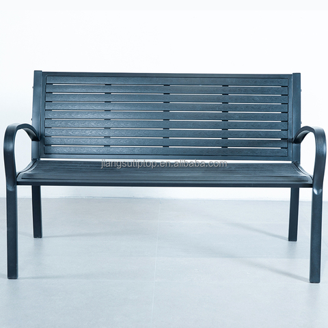Wholesale Outdoor Furniture Black Metal Patio Bench Park Leisure Bench with Armrest